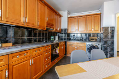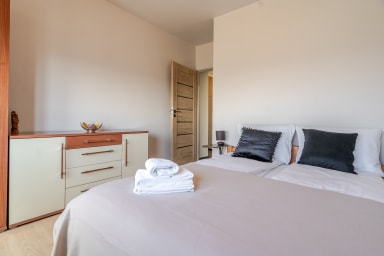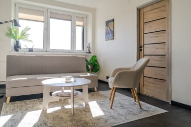 Silesia Panorama Apartment - Katowice is a comfortably and practically furnished apartment, ideal for both short and long stays. The apartment features a living room with a sofa bed, a kitchen, two bedrooms with comfortable double beds, a bathroom, a separate toilet, and a balcony where guests can relax and enjoy a morning coffee or an evening glass of wine. Guests have access to a wide range of amenities, including free WiFi, a TV, internet radio, a Google TV streamer, a washing machine, an iron, a hairdryer, a fridge with freezer, a dishwasher, an oven, a microwave, a Dolce Gusto coffee machine, a kettle, and essential kitchen accessories. Thanks to its convenient facilities, the apartment provides comfort, independence, and a welcoming atmosphere, perfect for relaxing after a day of sightseeing or business meetings. An outdoor parking space is also available for guests, without a guaranteed spot.