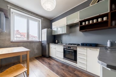 Głogowska Comfort Apartment consists of a living room with a sofa bed, a bedroom with a sofa bed, a kitchen, and a bathroom. It offers a range of high-quality amenities, including free Wi-Fi, a washing machine, hair dryer, iron, fridge with freezer, gas stove, oven, kettle and kitchen accessories.