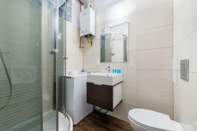 In the immediate vicinity you will find many shops, restaurants, cafés and service points. The apartment is very well connected thanks to numerous nearby bus and tram stops (Dworzec Zachodni, Park Wilsona) as well as the railway station (Poznań Główny). This allows guests to easily reach all the attractions Poznań has to offer.