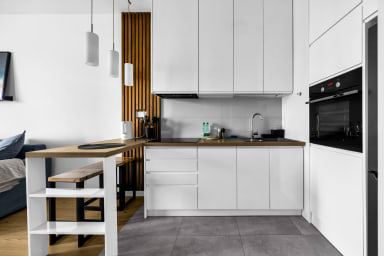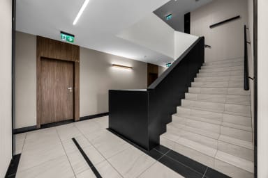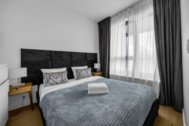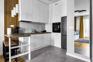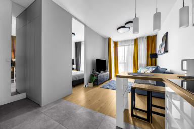 Białej Floty Superior Apartment is located in one of the most prestigious districts of Warsaw – Mokotów. A major advantage of the apartment is its location – just a 6-minute drive from Chopin Airport. Next to the apartment, there is an artificial water reservoir, perfect for a walk or a jog.