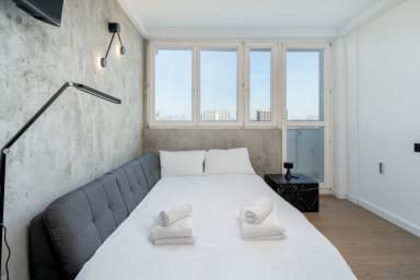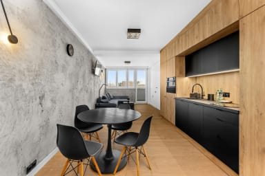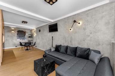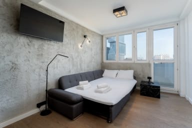 Korfantego Urban Loft Apartment is stylishly furnished and features a living room with a sofa bed and kitchenette, a bedroom with a comfortable double bed, a bathroom, and a spacious balcony where guests can relax and enjoy a morning coffee or an evening glass of wine. Guests have access to various amenities, including free WiFi, a TV, washing machine, iron, hairdryer, fridge with freezer, dishwasher, oven, induction cooktop, microwave, kettle, and kitchen accessories. Guests may use the public parking available outside the building; however, parking spaces are not guaranteed.