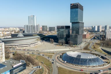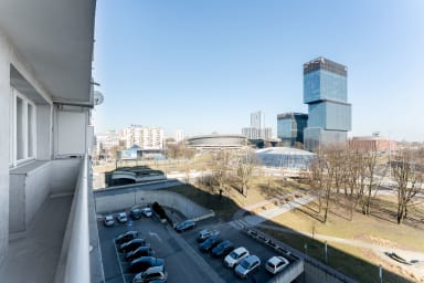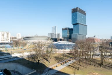 The apartment’s location also provides excellent access to public transport. Numerous bus and tram stops are located nearby, and Katowice railway station is just a 7-minute walk away, allowing for easy travel around the city as well as convenient connections to other regions of Poland. Katowice also offers an extensive network of cycling paths starting in the very city center. Using them, you can comfortably reach both the Trzy Stawy complex and the Silesian Park. Within Silesian Park, visitors will find many attractions, including a planetarium, the Silesian Zoological Garden, and the longest lowland cableway in Europe. During the cable car ride, you can admire picturesque views of the park and zoo from a completely new perspective.