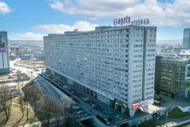 Katowice Market Square is also nearby. With its rich selection of restaurants, numerous cafés, and recreational spaces, it is a vibrant hub of social life and city events. Just a few minutes’ walk from the apartment is Galeria Katowicka, offering a wide range of shops, service points, and dining options, making everyday errands and shopping quick and convenient.