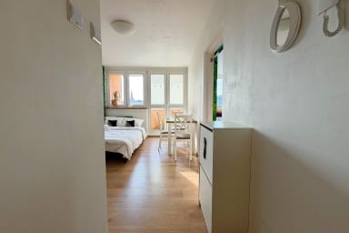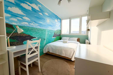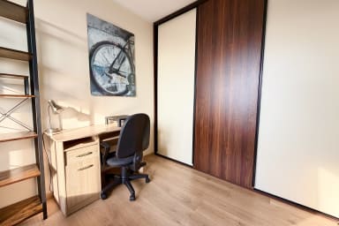 Zaporoska Skyline View Apartment is a stylish apartment located at 40 Zaporoska Street in Wrocław, in a peaceful, green part of the city that combines easy access to urban infrastructure, universities, and services with proximity to recreational areas. The location makes it an attractive place both for business travelers and tourists who want to comfortably explore Wrocław and relax after a day full of experiences. Right next to the apartment stands Sky Tower — the tallest building in Wrocław, featuring an observation deck at a height of around 200 meters that allows visitors to admire the city skyline.