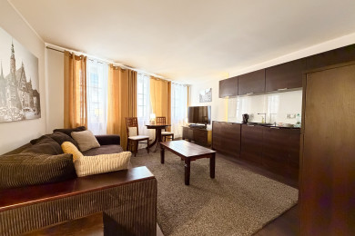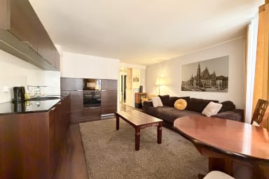 Rynek Wrocław Heritage Apartment is a stylish and comfortable apartment located in the heart of Wrocław, ideal for both tourist and business stays. It features a cozy living room with a sofa bed and a functional kitchenette, a separate bedroom with a comfortable double bed, and a modern bathroom with a bathtub. Guests have access to a full range of amenities to ensure comfort and independence during their stay, including fast, free Wi-Fi, cable TV, a washing machine, iron, hairdryer, induction hob, oven, kettle, dishwasher, microwave, and kitchen utensils.