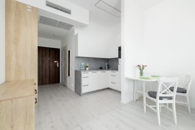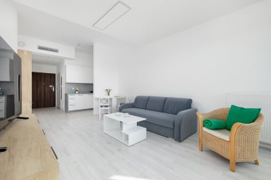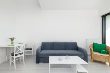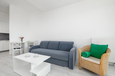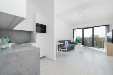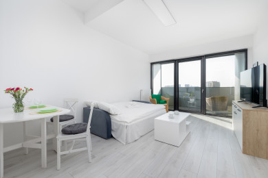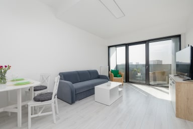 Hanza Tower Studio 514 is a cozy apartment featuring a living room with a sofa bed and a kitchenette, a bathroom, and a spacious balcony where guests can relax with a morning coffee or an evening glass of wine. The apartment offers a range of high-quality amenities, including free WiFi, a TV, a washing machine, an iron, a hairdryer, a dishwasher, an oven, an induction hob, a refrigerator, a kettle, and kitchen accessories. The apartment is also equipped with air conditioning, providing exceptional comfort, especially during hot days.