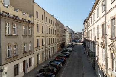 Bocheńska Standard Apartment is located at Bocheńska Street 3 in Kraków, in the Old Town district – in the very heart of Kazimierz. This is one of the most atmospheric places in Kraków, known for its artistic vibe, numerous cafés, restaurants, galleries, and historic landmarks that attract tourists from all over the world. Walking through the narrow, cobbled streets, you can feel the unique character of this area, where rich history blends with a modern lifestyle.