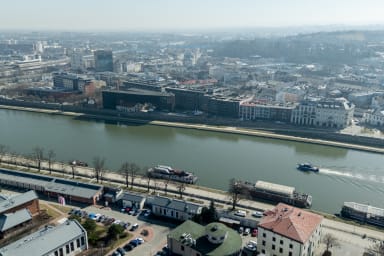 The immediate area offers a wide variety of dining options serving cuisine from around the world – from traditional Polish dishes to Italian, Israeli, and Asian specialties. It is also worth visiting the famous Plac Nowy with its local bars and cafés, as well as historic synagogues, the Galicia Jewish Museum, and the charming Bernatka Footbridge connecting to the other side of the Vistula River.