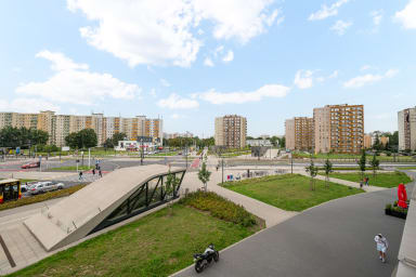 Metro Kondratowicza Spacious Apartment oferuje ładnie urządzone przestrzenie, tj. salon z aneksem kuchennym, wygodną sypialnię oraz łazienkę. Dopełnieniem jest przytulny, oferujący ciekawe widoki balkon. Goście mają do dyspozycji szereg praktycznych udogodnień, w tym pralkę, żelazko, telewizor oraz bezpłatne Wi-Fi.