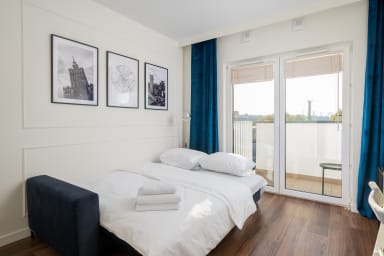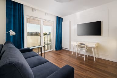 Praga Bliska Glamour Studio zlokalizowany jest w popularnej dzielnicy Warszawy - Praga Południe. W sąsiedztwie znajdują się rozległe tereny zielone, takie jak Park Skaryszewski, Kamionkowskie Błonia Elekcyjne, Park Obwodu Praga Armii Krajowej oraz Park Polińskiego, które cieszą się popularnością wśród miłośników sportu i rekreacji, gdyż oferują liczne ścieżki rowerowe i spacerowe, trasy do joggingu, a także siłownię zewnętrzną. Latem można tu podziwiać kolorowe kwiaty oraz cieszyć się świeżym powietrzem, a w okresie jesieni zachwycają piękne, złociste liście drzew. Dodatkowym atutem są organizowane w nim różnego rodzaju wydarzenia kulturalne i sportowe. Dzięki temu zawsze można znaleźć coś interesującego do zrobienia lub zobaczenia. Niecałe 20 minut spacerem dzieli nas od Stadionu PGE Narodowy, który organizuje liczne wydarzenia sportowe, ale również rozrywkowe. Stadion oferuje również wycieczki, na których można wejść na murawę, zobaczyć szatnię piłkarzy, loże VIP i posłuchać ciekawostek na temat samego stadionu. Tuż przy apartamencie znajduje się hala sportowa, stadion lekkoatletyczny, klub tenisowy oraz tor kolarski. Okolica jest pełna sklepów (Carrefour Express, Biedronka, Żabka, Lidl), restauracji (Warszawa Wschodnia by Mateusz Gessler, Bistro Kamionek, SOUR Deli Bar, Taverna Patris, Hato Sushi i wiele innych), kawiarni (Sacred Mill, Fit Cake, No I Co, Żona Krawca, Kawa & Zabawa) oraz punktów usługowych. Lokalizacja apartamentu sprzyja swobodnemu przemieszczeniu się po mieście ze względu na liczne przystanki autobusowe i tramwajowe (Dworzec Wschodnia (Lubelska), Lubelska, Bliska, Żupnicza) , stację metra (Stadion Narodowy), a także stacje kolejowe (Warszawa Stadion, Warszawa Wschodnia).