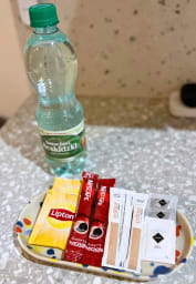 Na dobry początek pobytu przygotowaliśmy zestaw podstawowych artykułów higienicznych, takich jak papier toaletowy, mydło, szampon oraz żel pod prysznic. Pragniemy jednak uprzedzić, że są one dostępne w ograniczonej ilości i przeznaczone głównie na pierwsze dni pobytu. W celu zapewnienia sobie pełnego komfortu na dalsze dni, zalecamy zaopatrzenie się w dodatkowe artykuły zgodnie z Państwa potrzebami.