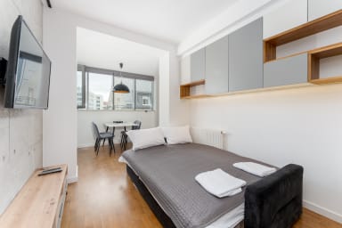 Ariańska Comfort Apartment to stylowo urządzony apartament, idealny na pobyt w Krakowie zarówno dla par, rodzin, jak i grup przyjaciół. Składa się z przytulnej sypialni z wygodnym łóżkiem małżeńskim, przestronnego salonu z rozkładaną sofą i w pełni wyposażonym aneksem kuchennym oraz eleganckiej łazienki.