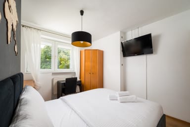 Park Moczydło Comfort Apartment to nowocześnie urządzony apartament, który posiada salon z wygodną rozkładaną kanapa wraz z aneksem kuchennym, sypialnie z wygodnym podwójnym łóżkiem, drugą sypialnię z rozkładaną kanapą oraz łazienkę. Amartament oferuje szereg najwyższej klasy udogodnień, w tym darmowe WiFi, telewizję naziemną w jednym pokoju oraz telewizor z możliwością podłączeia własnego laptopa, suszarkę do włosów, żelazko, zmywarkę, mikrofalówkę, piekarnik, kuchenkę indukcyjną, lodówkę z zamrażarką, czajnik oraz akcesoria kuchenne.Goście mogą korzystać z ogólnodostępnego parking na zewnątrz budynku bez gwarancji miejsc postojowych.