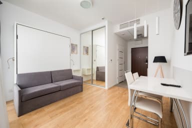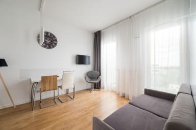 Varsovia Comfort 922 to stylowy apartament, który posiada salon z rozkładaną kanapą i aneksem kuchennym, łazienkę oraz przestronny balkon, gdzie goście będą mogli odpocząć oraz napić się porannej kawy, czy wieczornej lampki wina. Goście mają do dyspozycji szereg praktycznych udogodnień, w tym telewizję kablową, żelazko, suszarkę do włosów, lodówkę z zamrażarką, kuchenkę indukcyjną, zmywarkę, mikrofalówkę, ekspres do kawy, czajnik oraz akcesoria kuchenne. Ponadto apartament posiada klimatyzację, co daje niezwykły komfort, zwłaszcza w trakcie upalnych dni. Do apartamentu przynależy miejsce postojowe w garażu podziemnym.