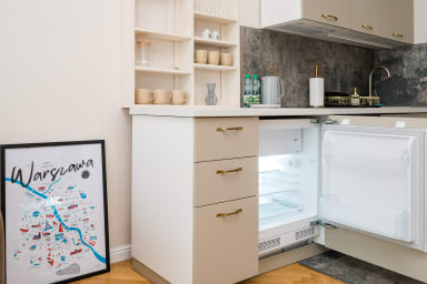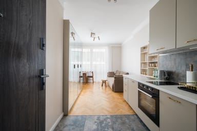 Widok Warsaw City Apartment to praktycznie urządzony apartament, który posiada salon z wygodntm łóżkiem małżeńskim, rozkładaną kanapę, dobrze wyposażony aneks kuchenny, nowoczesną łazienkę oraz balkon, gdzie goście będą mogli odpocząć oraz napić się porannej kawy, czy wieczornej lampki wina. Goście mają do dyspozycji rozmaite udogodnienia, w tym: darmowe WiFi, telewizor, żelazko, suszarkę do włosów, kuchenkę indukcyjną, lodówkę z zamrażarką, zmywarkę, piekarnik oraz akcesoria kuchenne.