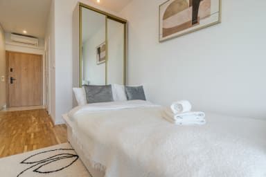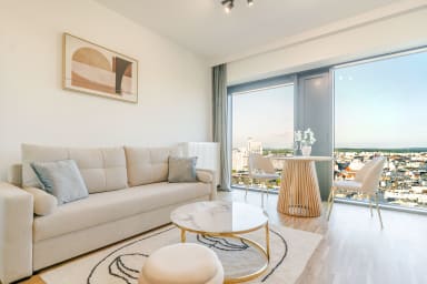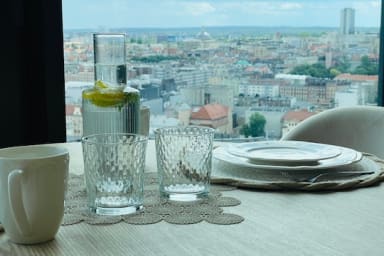 Global Top View 22th Floor PREMIUM posiada stylowo urządzony salon z rozkładaną kanapą, aneks kuchenny oraz łazienkę. Z okien apartamentu rozpościera się niesamowity widok na panoramę miasta. Goście mają do dyspozycji rozmaite udogodnienia, w tym: darmowe WiFi, telewizor, żelazko, suszarkę do włosów, pralkę, lodówkę z zamrażarką, kuchenkę indukcyjną, piekarnik, mikrofalówkę, toster, ekspres do kawy, czajnik oraz akcesoria kuchenne. Ponadto apartament posiada klimatyzację co daje niezwykły komfort, zwłaszcza w trakcie upalnych dni. Do dyspozycji Gości pozostaje również prywatne miejsce postojowe. Na trzecim piętrze znajduje się ogólnodostępne patio, idealne na chwilę relaksu lub spotkanie na świeżym powietrzu.