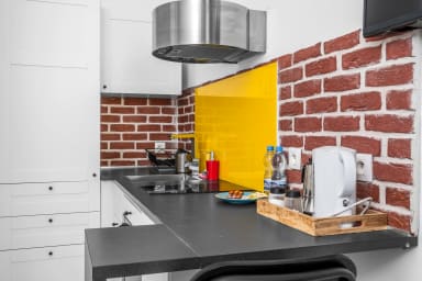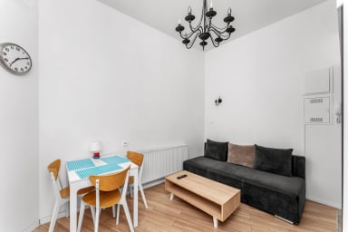 Morsztynowska Studio with Mezzanine to przytulne, stylowo urządzone studio z antresolą, łączące nowoczesne udogodnienia z klimatem historycznego wnętrza. Wysokie sufity, murowane akcenty i jasna kolorystyka tworzą przestrzeń sprzyjającą relaksowi. Apartament oferuje w pełni wyposażony aneks kuchenny, wygodny salon z rozkładaną sofą, sypialnię na antresoli oraz jadalnię przy dużym oknie, z której wychodzi się na niewielki balkon. Balkon wyposażony jest w stolik i dwa krzesła – idealne miejsce na poranną kawę lub lampkę wina po dniu pełnym wrażeń.