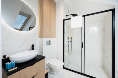 Nowoczesny i przytulny apartament urządzony w jasnych barwach, inspirowany skandynawskim stylem. Przestrzeń została zaprojektowana z dbałością o detale – drewniana podłoga w jodełkę nadaje wnętrzu elegancji, a duże okna i jasne ściany zapewniają mnóstwo naturalnego światła. To idealna przestrzeń zarówno na krótki pobyt, jak i dłuższy wyjazd w komfortowych warunkach.