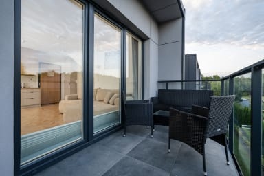 Rąbieńska Urban Elegance Apartment składa się z salonu z rozkładaną kanapą, aneksu kuchennego, łazienki i balkonu – prawdziwy atut tego miejsca, idealny na poranną kawę lub relaks po dniu zwiedzania. Mieszkanie wyposażone jest w Wi-Fi, telewizor z łączem SMART TV, pralkę, lodówkę z zamrażalnikiem, kuchenkę elektryczną, piekarnik, czajnik, zmywarkę, toster, a także żelazko i suszarkę do włosów. Do dyspozycji gości jest również prywatne miejsce parkingowe z gwarancją dostępności.