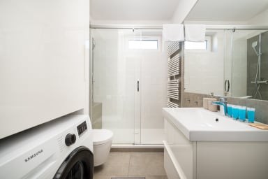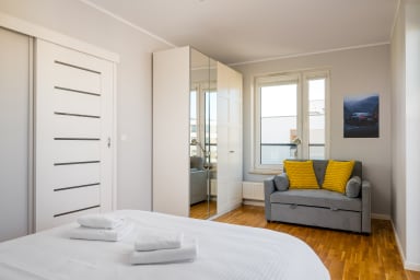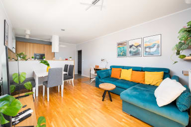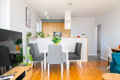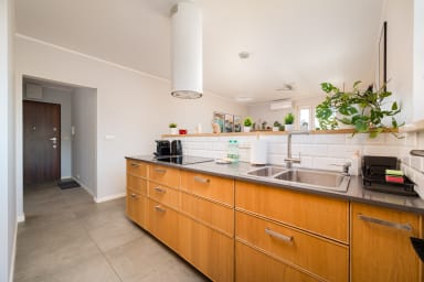 Las Bródnowski Urban Jungle Apartment to praktycznie i przytulnie urządzony apartament, który posiada salon z rozkładaną kanapą i aneksem kuchennym, sypialnię z wygodnym łóżkiem typu king size i rozkładaną kanapą, łazienkę oraz dwa balkony, gdzie goście będą mogli odpocząć oraz napić się porannej kawy, czy wieczornej lampki wina. Mieszkanie posiada biurko, które umożliwia naukę lub pracę zdalną. Goście mają do dyspozycji szereg praktycznych udogodnień, w tym darmowe WiFi, telewizję kablową, żelazko, pralkę, suszarkę do włosów, zmywarkę, lodówkę z zamrażarką, kuchenkę indukcyjną, piekarnik, mikrofalówkę, toster, ekpres do kawy marki Nespresso, czajnik oraz akcesoria kuchenne. Ponadto apartament posiada klimatyzację co daje niezwykły komfort, zwłaszcza w trakcie upalnych dni. Do dyspozycji Gości pozostaje również miejsce postojowe w garażu podziemnym.