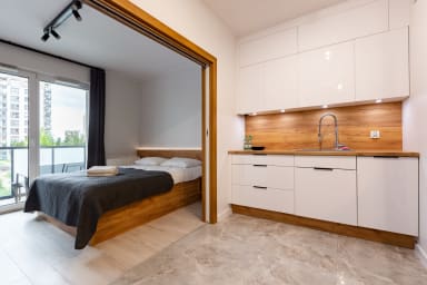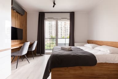 Arena Gdańsk Superior Apartment posiada stylowo urządzoną sypialnię z wygodnym łóżkiem małżeńskim i aneksem kuchennym, sypialnię z rozkładaną kanapą, łazienkę oraz przestronny balkon, gdzie goście będą mogli odpocząć oraz napić się porannej kawy, czy wieczornej lampki wina. Apartament posiada również biurko, co umożliwia naukę lub pracę zdalną. Goście mają do dyspozycji szereg praktycznych udogodnień, w tym darmowe Wi-Fi, telewizję kablową, pralkę, żelazko, suszarkę do włosów, lodówkę z zamrażarką, zmywarkę, kuchenkę indukcyjną, piekarnik, czajnik oraz akcesoria kuchenne. Apartament posiada klimatyzację, co daje niezwykły komfort, zwłaszcza w trakcie upalnych dni. Do dyspozycji Gości pozostaje również miejsce postojowe w garażu podziemnym.