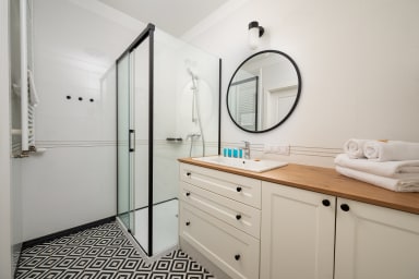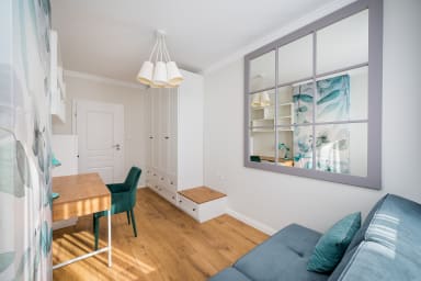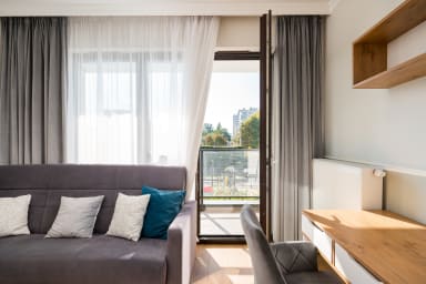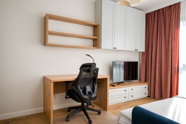 Metro Płocka 3-Bedroom Apartment znajduje się w spokojnej okolicy, nieopodal wielu ciekawych atrakcji, blisko dzielnicy biznesu oraz kompleksu budynków Warsaw Spire. W sąsiedztwie znajdują się rozległe tereny zielone takie jak Park Edwarda Szymańskiego i Józefa Sowińskiego, co czyni je idealnym miejscem na spacer i odpoczynek na łonie natury, ale również doskonałym miejsce do uprawiania aktywności fizycznej na świeżym powietrzu. Polecamy udać się do pobliskiego Muzeum Powstania Warszawskiego, klub VooDoo oraz Interaktywnego Muzeum Flipperów "Pinball Station". W najbliższej okolicy znajdują się liczne sklepy (Żabka, Lewiatan, Carrefour Express, Auchan), kawiarnie (Alta Qualita Caffe, Kawalerka, District Speciality Coffee), restauracje (Pełna Micha, Manty, FoodPorn Bar, Zawijane) oraz punkty usługowe. Lokalizacja apartamentu sprzyja swobodnemu przemieszczaniu się po mieście, ze względu na znajdujące się w pobliżu liczne przystanki autobusowe oraz tramwajowe (Metro Płocka, Sokołowska, PKP Wola), stacja metra (Płocka) oraz stacja kolejowa (Warszawa Wola).