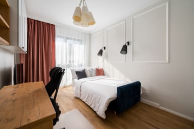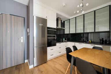Metro Płocka 3-Bedroom Apartment to praktycznie i przytulnie urządzone mieszkanie, które posiada trzy oddzielne sypialnie z rozkładanymi kanapami i biurkami umożliwiającymi naukę lub pracę zdalną, kuchnię, łazienkę oraz balkon, gdzie goście będą mogli odpocząć oraz napić się porannej kawy, czy wieczornej lampki wina. Na miejscu Goście mogą korzystać z wielu udogodnień jakie oferuje apartament, takich jak darmowe WiFi, telewizor, pralka, żelazko, suszarka do włosów, piekarnik, lodówka z zamrażarką, zmywarka, kuchenka indukcyjna, czajnik, mikrofalówka oraz akcesoria kuchenne. Do dyspozycji Gości pozostaje miejsce postojowe w garażu podziemnym.