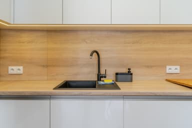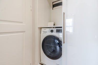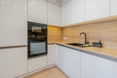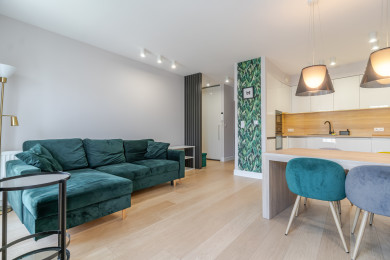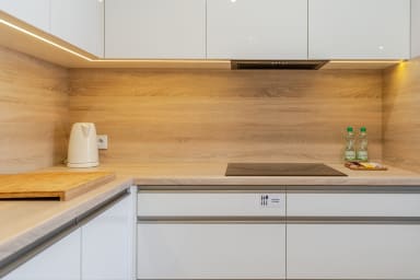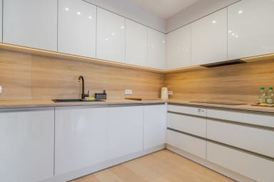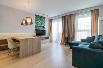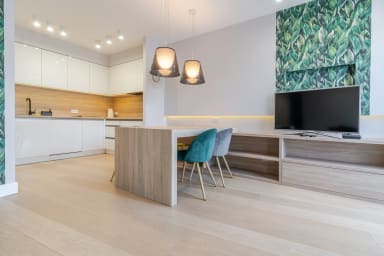 wieczornej lampki wina. W apartamencie dostępne są: Wi-Fi, telewizja kablowa, lodówka z zamrażalnikiem, kuchenka, piekarnik, czajnik, zmywarka i pralka. Dodatkowo w domu znajdują się żelazko, odkurzacz i suszarka do włosów. Goście mają również do dyspozycji miejsce parkingowe w garażu podziemnym.