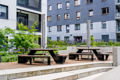Stacja Jeżyce Superior Apartment #A to niezwykle stylowo urządzony apartament, który posiada salon z rozkładaną kanapą i aneksem kuchennym, łazienkę oraz ogródek, gdzie goście będą mogli odpocząć oraz napić się porannej kawy, czy wieczornej lampki wina. Oferuje szereg najwyższej klasy udogodnień, w tym bezpłatne Wi-Fi, telewizor, pralkę, suszarkę do włosów, żelazko, zmywarkę, kuchenkę indukcyjną, piekarnik, lodówkę z zamrażarką, toster, ekspres do kawy, czajnik oraz akcesoria kuchenne. Ponadto apartament posiada klimatyzację, co daje niezwykły komfort, zwłaszcza w trakcie upalnych dni.