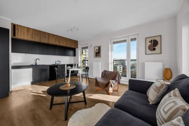 Yellow Soho Factory Elegant Apartment to wyjątkowe miejsce łączące nowoczesny design z domową przytulnością. Apartament składa się ze stylowo urządzonego salonu z aneksem kuchennym, eleganckiej sypialni z komfortowym łóżkiem małżeńskim, nowoczesnej łazienki oraz przestronnego balkonu z zachwycającym widokiem na panoramę miasta i Stadion Narodowy. To idealne miejsce, aby rozpocząć dzień filiżanką aromatycznej kawy lub zrelaksować się wieczorem przy lampce wina, podziwiając rozświetlone miasto.