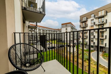 Posnania Deluxe Apartment posiada salon z rozkładaną kanapą i aneksem kuchennym, sypialnię z wygodnym łóżkiem typu king size, łazienkę oraz przestronny balkon, gdzie goście będą mogli odpocząć oraz napić się porannej kawy, czy wieczornej lampki wina. Oferuje szereg najwyższej klasy udogodnień, w tym darmowe Wi-Fi, telewizor, pralkę, suszarkę do włosów, żelazko, zmywarkę, kuchenkę indukcyjną, piekarnik, lodówkę z zamrażarką, czajnik oraz akcesoria kuchenne. Do dyspozycji Gości pozostaje również miejsce postojowe w garażu podziemnym.