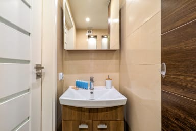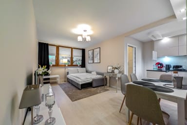 Drukarska Serenity Apartment to przytulne i nowoczesne mieszkanie położone przy ulicy Drukarskiej 45 we Wrocławiu — w spokojnej, zielonej części miasta, która łączy łatwy dostęp do miejskiej infrastruktury, uczelni i usług z dostępem do terenów rekreacyjnych. Lokalizacja czyni to miejsce atrakcyjnym zarówno dla osób przyjeżdżających w podróży służbowej, jak i turystów chcących komfortowo zwiedzać Wrocław i odpocząć po dniu pełnym wrażeń. Okolica oferuje wiele możliwości spędzania czasu na świeżym powietrzu. W pobliżu znajdują się między innymi Park Andersa — idealny na poranny spacer, jogging lub popołudniowy relaks w cieniu drzew, a także Park Skowroni — spokojna, zielona przestrzeń sprzyjająca wyciszeniu i kontaktowi z naturą. Dla miłośników historii i nietypowych atrakcji wart uwagi jest Wrocławskie Muzeum Cmentarne, a także charakterystyczna Wieża Ciśnień Borek — punkt widokowy z klimatem, oferujący ładne panoramy miasta i okolic. Bardzo blisko mieszkania znajduje się również kampus uniwersytecki — Uniwersytet Ekonomiczny we Wrocławiu — co czyni lokalizację idealną dla studentów, wykładowców lub osób przyjeżdżających w sprawach zawodowych. W zasięgu krótkiego spaceru dostępne są liczne sklepy spożywcze, piekarnie, kawiarnie i lokale gastronomiczne, co ułatwia codzienny pobyt. Do wrocławskiego Rynku można dojechać samochodem w około 14 minut, a komunikacją miejską w około 25 minut. Rynek stanowi tętniące życiem centrum miasta — pełne kolorowych kamienic, klimatycznych restauracji, kawiarni, pubów oraz licznych wydarzeń kulturalnych. Lokalizacja apartamentu zapewnia tym samym wygodne połączenie spokojnej, kameralnej okolicy z łatwym i szybkim dostępem do głównej części Wrocławia. Okolica jest dobrze skomunikowana — w pobliżu mieszkania znajdują się przystanki autobusowe i tramwajowe, co umożliwia łatwy dojazd w różne części miasta. Dodatkowym atutem lokalizacji jest bliskość stacji kolejowej Wrocław Główny, oddalonej jedynie o około 2 kilometry od apartamentu. Dzięki temu goście mogą w szybki i wygodny sposób korzystać z połączeń regionalnych oraz dalekobieżnych, co znacząco ułatwia zarówno podróże służbowe, jak i weekendowe wyjazdy po kraju.