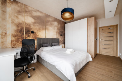 Tobaco Park II Prestige Apartment to niezwykle stylowo urządzony apartament, który posiada salon z częścią wypoczynkową i aneksem kuchennym, sypialnię z wygodnym łóżkiem małżeńskim, łazienkę oraz balkon, gdzie goście będą mogli odpocząć oraz napić się porannej kawy, czy wieczornej lampki wina. Goście mają do dyspozycji szereg praktycznych udogodnień, w tym telewizor, pralkę, żelazko, suszarkę do włosów, lodówkę z zamrażarką, zmywarkę, piekarnik, kuchenkę indukcyjną, czajnik oraz akcesoria kuchenne. Ponadto mieszkanie posiada klimatyzację, co daje niezwykły komfort, zwłaszcza w trakcie upalnych dni.