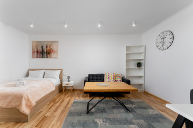 Starowiślna 14 Downtown Studio #9B to komfortowy apartament, który posiada salon z wygodnym łóżkiem małżeńskim i rozkładaną kanapą, kuchnię oraz łazienkę. Apartament zapewnia dostęp do szeregu udogodnień, w tym bezpłatne WiFi, telewizor, pralkę, suszarkę do włosów, żelazko, lodówkę z zamrażarką, czajnik elektryczny, kuchenkę indukcyjną, mikrofalówkę, toster oraz niezbędne akcesoria kuchenne.