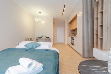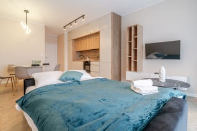 Spodek Urban Chic Studio znajduje się w znakomitej lokalizacji, zaledwie 900 metrów od hali widowiskowo - sportowej "Spodek" w Katowicach. Usytuowany w centrum Katowic, Spodek stał się symbolem miasta oraz ważnym miejscem na mapie kulturalnej i sportowej kraju. Spodek jest wielofunkcyjnym obiektem, który pomieści około 11 tysięcy widzów, goszczącym różnorodne wydarzenia, w tym koncerty, mecze sportowe, wydarzenia rozrywkowe, targi, wystawy i konferencje. 25 minut spacerem dzieli nas od Rynku w Katowicach - centralne miejsce w sercu miasta, które stanowi ważny punkt spotkań, rozrywki i życia społecznego. Zlokalizowany w historycznym centrum, Rynek jest otoczony zabytkowymi budynkami, kawiarniami, restauracjami i sklepami, tworząc atmosferę pełną historii i charakteru. To miejsce pełne życia, zwłaszcza podczas ciepłych dni, kiedy liczni mieszkańcy i turyści korzystają z uroków rynkowej atmosfery. Oferuje ono różnorodność atrakcji, takich jak kulturalne wydarzenia, koncerty plenerowe, festiwale oraz targi, które przyciągają mieszkańców i odwiedzających z różnych miejsc. 20 minut spacerem dzieli nas od Uniwersytetu Śląskiego. W pobliżu znajduje się wiele obiektów turystycznych wartych odwiedzenia, takich jak: Muzeum Śląskie, Narodowa Orkiestra Symfoniczna Polskiego Radia oraz Park Bogucki, idealne miejsce na spacer lub jogging w otoczeniu natury. 40 minut jazdy komunikacją miejską dzieli nas od Parku Śląskiego. Park Śląski jest miejscem licznych wydarzeń kulturalnych, koncertów i festiwali przez cały rok. W parku znajduje się nowoczesne planetarium, gdzie zwiedzający mogą odkrywać tajemnice wszechświata. Park oferuje liczne obiekty rekreacyjne, takie jak ścieżki do biegania i rowerowe, korty tenisowe oraz otwarte przestrzenie do różnorodnych aktywności rekreacyjnych. Posiada również zoo, które pozwala odwiedzającym obserwować i dowiadywać się więcej o różnorodnych gatunkach zwierząt. Sąsiedztwo apartamentu jest pełne sklepów, restauracji, kawiarni, lokali rozrywkowych, punktów usługowych oraz centrum handlowe Galeria Katowicka. Lokalizacja sprzyja swobodnemu przemieszczeniu się ze względu na liczne przystanki autobusowe (Markiefki, Strefa Kultury) oraz Dworzec Główny PKP Katowice.