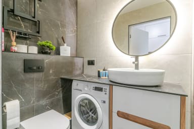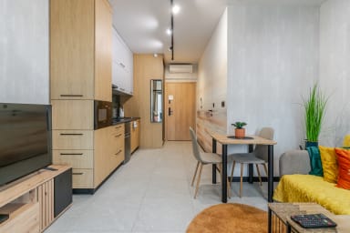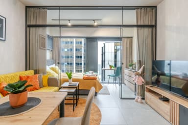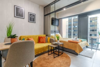 Global Park 21th View Studio posiada stylowo urządzony salon z rozkładaną kanapą oraz łóżkiem małżeńskim, aneks kuchenny oraz łazienkę. Z okien apartamentu rozpościera się niesamowity widok na panoramę miasta. Goście mają do dyspozycji rozmaite udogodnienia, w tym: darmowe WiFi, telewizor, żelazko, suszarkę do włosów, pralkę, lodówkę z zamrażarką, kuchenkę indukcyjną, piekarnik, mikrofalówkę, toster, czajnik oraz akcesoria kuchenne. Ponadto apartament posiada klimatyzację co daje niezwykły komfort, zwłaszcza w trakcie upalnych dni. Do dyspozycji Gości pozostaje również prywatne miejsce postojowe. Na trzecim piętrze znajduje się ogólnodostępne patio, idealne na chwilę relaksu lub spotkanie na świeżym powietrzu.