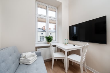 Łódź Downtown Studio 7A with Mezzanine to apartament położony w znakomitej lokalizacji Łodzi, zaledwie 10 minut spacerem ud ulicy Piotrkowskiej. Piotrkowska to najbardziej charakterystyczny i historyczny deptak w Polsce, pełny życia i unikalnego klimatu. Ogrom restauracji, kawiarni, unikatowych butików, sklepów z pamiątkami i klubów nocnych czyni ulicę idealnym miejscem na spotkania towarzyskie. Ulica Piotrkowska jest również epicentrum wszystkich imprez kulturalnych i wydarzeń. Organizowane są tu koncerty, festiwale filmowe, targi i przeróżne wydarzenia artystyczne przyciągające mieszkańców i turystów. Piotrkowska słynie też z intensywnego życia nocnego: wieczorem, gdy rozkwitają liczne bary, puby i kluby, staje się centrum rozrywki dla wszystkich tubylców i gości. W najbliższej okolicy znajduje się wiele punktów turystycznych wartych odwiedzenia takich jak Muzeum Światła, Muzeum Miasta Łodzi w historycznym Pałacu Poznańskiego, Muzeum Sztuki , Filharmonia Łódzka czy Teatr Wielki. W zasięgu ręki mamy wiele sklepów, kawiarni, restauracji, lokali rozrywkowych, punktów usługowych oraz centra handlowe: Manufaktura i Galeria Łódzka. Apartament jest świetnie skomunikowany z resztą miasta także ze względu na liczne przystanki autobusowe i tramwajowe oraz stacja kolejowa (Łódź Kaliska). Dzięki temu Goście w łatwy sposób mogą dostać się do wszystkich pozostałych atrakcji oferowanych przez miasto takich jak hala widowiskowa Atlas Arena, spektakularny ogród zoologiczny, ogród botaniczny czy aquapark Fala.