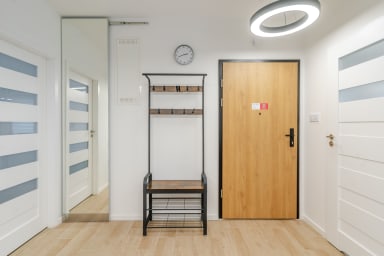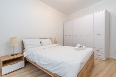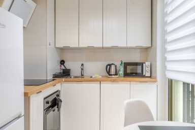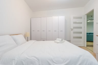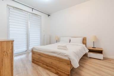 Strzelecka Bright Apartment składa się z salonu z rozkładaną kanapą i aneksem kuchennym, sypialni z łóżkiem typu king sizem łazienki oraz balkonu, gdzie goście będą mogli odpocząć oraz napić się porannej kawy, czy wieczornej lampki wina. W apartamencie dostępne są: Wi-Fi, lodówka z zamrażalnikiem, zmywarka, kuchenka indukcyjna, piekarnik, mikrofalówka, czajnik, pralka oraz akcesoria kuchenne. W domu znajdują się także żelazko, odkurzacz i suszarka do włosów. Goście mogą również korzystać z miejsca parkingowego bez gwarancji wolnego miejsca, z możliwością wystąpienia opłat.