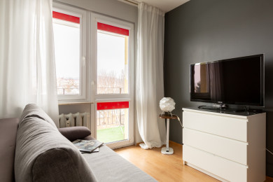 Reda Cozy Nest Apartment posiada salon z rozkładaną kanapą, sypialnię z wygodnym łóżkiem małżeńskim, kuchnię, łazienkę oraz przestronny balkon, gdzie goście będą mogli odpocząć oraz napić się porannej kawy, czy wieczornej lampki wina.