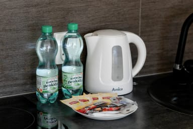 Na dobry początek pobytu przygotowaliśmy zestaw podstawowych artykułów higienicznych, takich jak papier toaletowy, mydło, szampon oraz żel pod prysznic. Pragniemy jednak uprzedzić, że są one dostępne w ograniczonej ilości i przeznaczone głównie na pierwsze dni pobytu. W celu zapewnienia sobie pełnego komfortu na dalsze dni, zalecamy zaopatrzenie się w dodatkowe artykuły zgodnie z Państwa potrzebami.