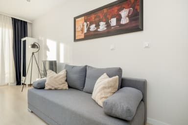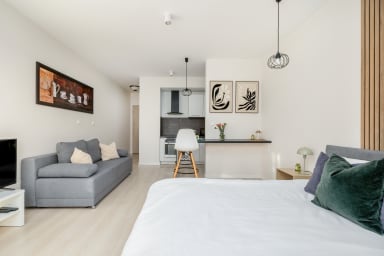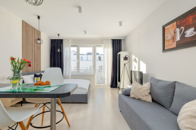 Potulicka Coffee Studio to przytulnie i stylowo urządzony apartament, który posiada salon z rozkładaną kanapą i wygodnym łóżkiem małżeńskim, aneks kuchenny, łazienkę oraz balkon, gdzie goście będą mogli odpocząć oraz napić się porannej kawy, czy wieczornej lampki wina. Oferuje szereg najwyższej klasy udogodnień, w tym darmowe WiFi, telewizję naziemną, pralkę, żelazko, suszarkę do włosów, kuchenkę indukcyjną, lodówkę z zamrażarką, zmywarkę, piekarnik oraz akcesoria kuchenne.