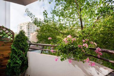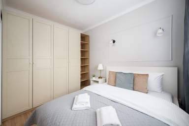 Praga Komorska Delightful Apartment zlokalizowany jest w popularnej dzielnicy Warszawy - Praga Południe. W sąsiedztwie znajdują się rozległe tereny zielone, takie jak Park imienia półkownika Jana Szypowskiego, Park Skaryszewski oraz Kamionkowskie Błonia Elekcyjne, które cieszą się popularnością wśród miłośników sportu i rekreacji, gdyż oferują liczne ścieżki rowerowe i spacerowe, trasy do joggingu, a także siłownię zewnętrzną. Nieopodal apartamentu znajduje się Escape Room - Back Cat. Okolica jest pełna sklepów (Auchan, Lidl, Żabka, Delikatesy Centrum, Dealz, Stokrotka), restauracji (Objadalnia, Parnik, Shamto, Z Pieca i Z Gara, Asia Deli, Absheron), kawiarni (Wild Bean Cafe, Granell, Kawy Łyk, Dobro&Dobro Cafe, Costa Coffee), punktów usługowych oraz targowisko Bazar Szembeka. Lokalizacja apartamentu sprzyja swobodnemu przemieszczeniu się po mieście ze względu na liczne przystanki autobusowe i tramwajowe (Plac Szembeka, Wspólna Droga, Gdecka, Łukowska, Żółkiewskiego) oraz stację kolejową (Warszawa Olszynka Grochowska). Dzięki temu Goście w łatwy sposób mogą dostać się do wszelkich atrakcji oferowanych przez Warszawę.
