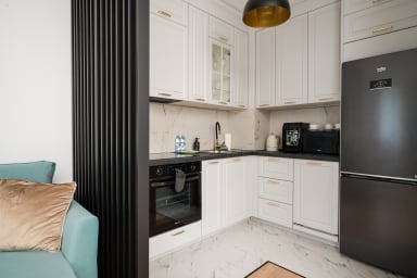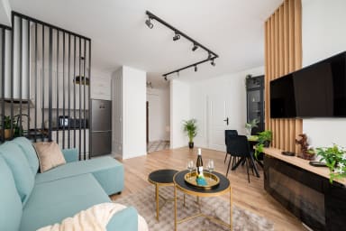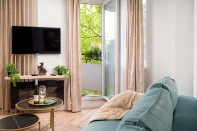Praga Komorska Delightful Apartment posiada stylowo urządzony salon z rozkładaną kanapą i aneksem kuchennym, sypialnię z wygodnym łóżkiem małżeńskim, łazienkę oraz przestronny balkon, gdzie goście będą mogli odpocząć oraz napić się porannej kawy, czy wieczornej lampki wina. Goście mają do dyspozycji szereg praktycznych udogodnień, w tym darmowe WiFi, telewizor, pralkę, żelazko, suszarkę do włosów, lodówkę z zamrażalnikiem, zmywarkę, piekarnik, czajnik elektryczny, mikrofalę, kuchenkę indukcyjną oraz akcesoria kuchenne.