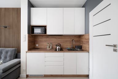 Łódź Fabryczna Harmony Studio to stylowo urządzony apartament, który posiada salon z rozkładaną kanapą i aneksem kuchennym, łazienkę oraz balkon, gdzie goście będą mogli odpocząć oraz napić się porannej kawy, czy wieczornej lampki wina. Goście mają do dyspozycji szereg praktycznych udogodnień, w tym darmowe Wi-Fi, pralkę, żelazko, suszarkę do włosów, lodówkę z zamrażarką, kuchenkę elektryczną, mikrofalówkę, czajnik oraz akcesoria kuchenne.