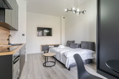 Słowackiego Modern Studio to stylowo i przytulnie urządzony apartament, który posiada salon z rozkładaną kanapą i aneksem kuchennym oraz łazienkę. Goście mają do dyspozycji rozmaite udogodnienia, w tym: telewizor, pralkę, żelazko, suszarkę do włosów, lodówkę z zamrażarką, zmywarkę, piekarnik, kuchenkę indukcyjną oraz akcesoria kuchenne.