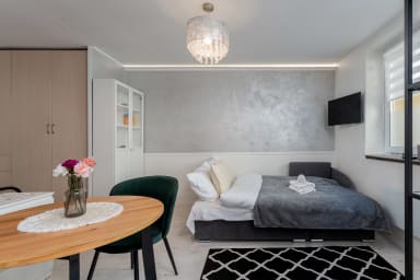 Rakowicka Superior Studio to elegancki i nowocześnie urządzony apartament, idealny zarówno na krótki, jak i dłuższy pobyt. Przemyślany design i funkcjonalne rozwiązania sprawiają, że jest to doskonałe miejsce na wypoczynek lub pracę zdalną w sercu miasta.