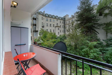 Sereno Vista Apartment składa się z sypialni z kanapą, salonu z aneksem kuchennym, łazienki oraz balkonu. Balkon stanowi szczególny atut, umożliwiając relaks na świeżym powietrzu w samym sercu miasta. W apartamencie znajdują się: Wi-Fi, telewizor, lodówka z zamrażalnikiem, kuchenka, piekarnik, czajnik i mikrofalówka. Dodatkowo goście mają do dyspozycji żelazko, odkurzacz i suszarkę do włosów.