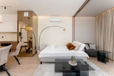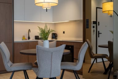 Cracow Novum Apartment #365 to stylowo urządzony apartament, który posiada salon z rozkładaną kanapą i aneksem kuchennym, sypialnię z wygodnym łóżkiem małżeńskim, łazienkę oraz przestronny balkon, gdzie goście będą mogli odpocząć oraz napić się porannej kawy, czy wieczornej lampki wina. Goście mają do dyspozycji szereg praktycznych udogodnień, w tym darmowe Wi-Fi, telewizję naziemną, pralkę, żelazko, suszarkę do włosów, lodówkę z zamrażarką, zmywarkę, piekarnik, kuchenkę indukcyjną, ekspres do kawy marki Nespresso, czajnik oraz akcesoria kuchenne. Ponadto apartament posiada klimatyzację, co daje niezwykły komfort, zwłaszcza w trakcie upalnych dni. Do dyspozycji Gości pozostaje również miejsce postojowe w garażu podziemnym.