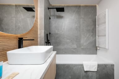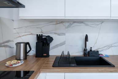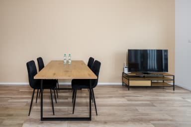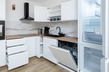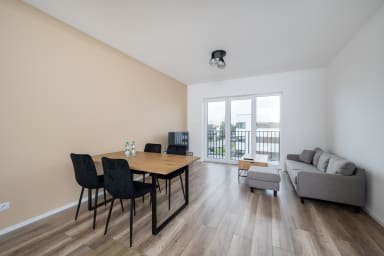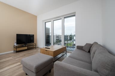 Świętojańska Harmony Apartment to przytulne i elegancko urządzone mieszkanie, które składa się z przestronnego salonu z aneksem kuchennym i wygodną sofą, dwóch sypialni — jednej z łóżkiem typu king size oraz drugiej z łóżkiem podwójnym — a także łazienki i balkonu. Balkon stanowi wyjątkowy atut apartamentu, oferując możliwość wypoczynku na świeżym powietrzu z widokiem na spokojną okolicę. W apartamencie dostępne są liczne udogodnienia: bezpłatne Wi-Fi, telewizor, lodówka z zamrażalnikiem, kuchenka, piekarnik, czajnik oraz zmywarka. Goście mają do dyspozycji także żelazko, odkurzacz i suszarkę do włosów. Dodatkowym atutem jest możliwość skorzystania z miejsca parkingowego z gwarancją dostępności.