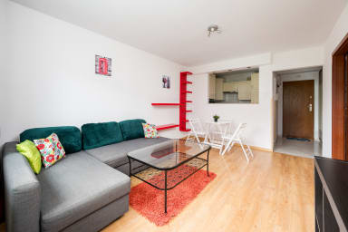 Rondo ONZ Downtown Apartment to przytulnie urządzony apartament, który salon z rozkładaną kanapą, sypialnię z wygodnym łóżkiem małżeńskim, kuchnię oraz łazienkę. Apartament posiada biurko, co umożliwia naukę lub pracę zdalną. Goście mają do dyspozycji rozmaite udogodnienia, w tym: darmowe WiFi, telewizor, pralkę, żelazko, suszarkę do włosów, lodówkę z zamrażarką, zmywarkę, mikrofalówkę, toster, czajnik oraz akcesoria kuchenne.